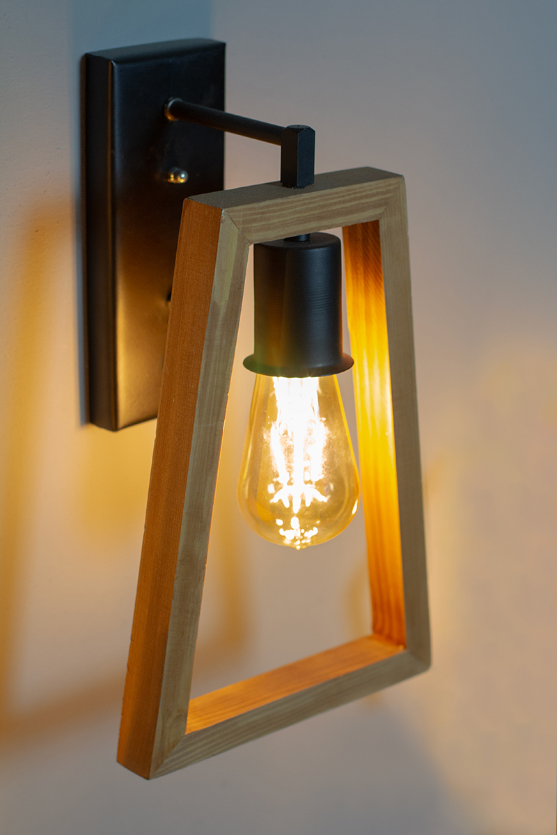 معرفی چراغ دیواری چوب و فلز تک شعله مدل BAM8011W