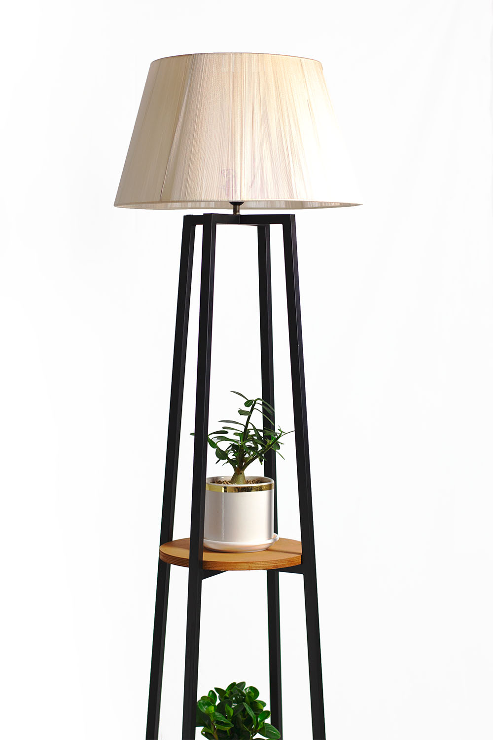 آباژور و کنارسالنی شیددار تک شعله مدل BAF901 یک آباژور با شکل هندسی مخروطی است که در آن از یک شید مخروطی نخی استفاده می شود. این آباژور دارای دو طبقه استند با صفحه چوبی دایره ای است که در دو قطر مختلف می باشد و فضای مناسبی به شما برای قرار دادن انواع لوازم و کالاهای دکوری تزئینی را روی آن قرار دهید. نوردهی آباژور ایستاده BAF901 روبه بالا می باشد.این محصول برای قراردادن در کنار کاناپه و مبلمان شما بسیار مناسب است و زیبایی چشم نوازی به فضای زندگی و محیط کار شما می دهد.